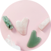 Поставьте гуаша длинной гранью вдоль лба и ведите от брови к зоне роста волос, придерживая кожу снизу свободной рукой. Промассируйте лоб по всей ширине и точки в зоне над лбом.